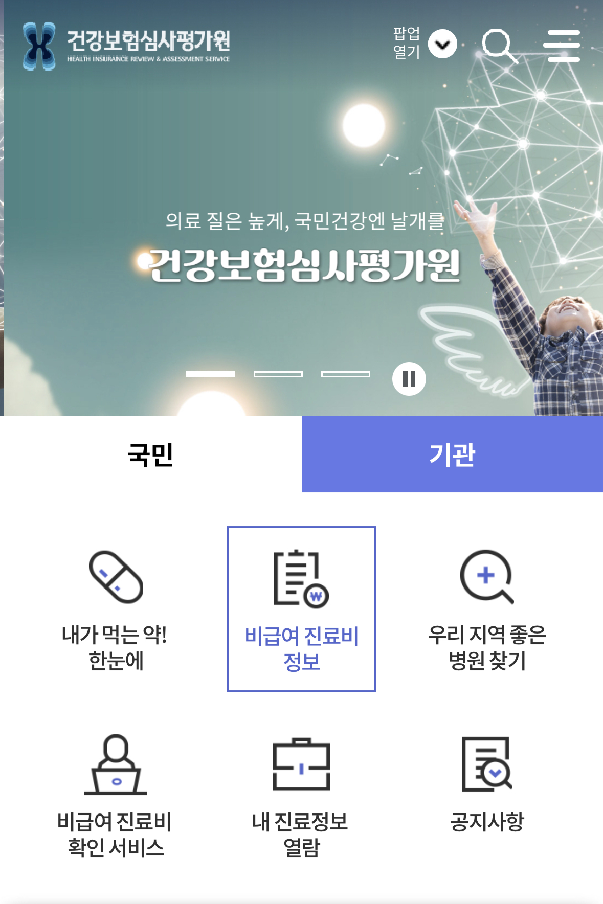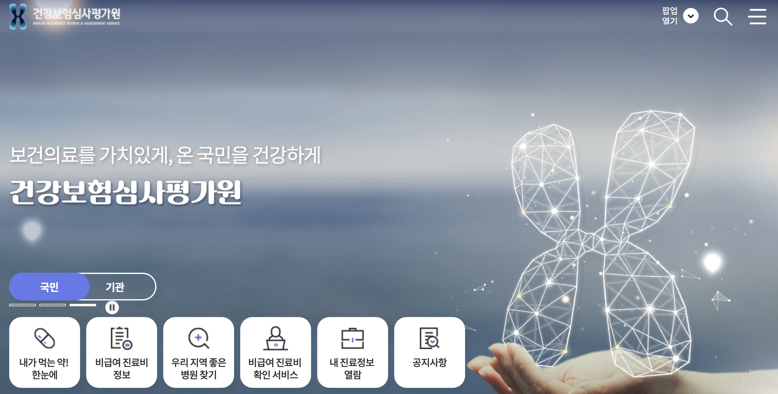 1. 아래 건강보험심사평가원 홈페이지에 접속하면된다.