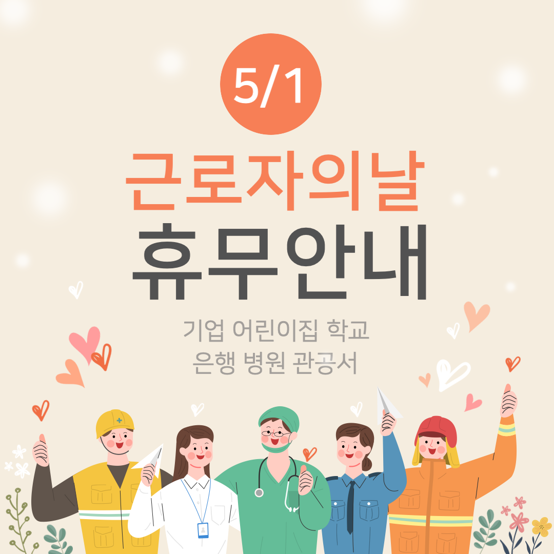5월 1일은 근로자의 날 어린이집, 학교, 은행 공무원 등 어떤 직군이 쉬는지 알아보았다. 근로자의 날에 어떤 직군이 휴무인지 확인해 보자.