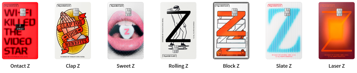 현대카드 Z ontact 2,30대들에게 적합한 신용카드다. 배달의 민족, 요기요, 쿠팡이츠 배달 앱 이용금액의 10% 청구 할인 혜택을 제공한다. 전월 이용금액 40만 원 이상 시 월 5천 원의 할인 한도가 있지만 80만 원 이상 사용 시에는 월 8천 원 한도를 제공한다. 대상 배달 앱을 통한 1일 1회 할인이 적용되며 대상점 공식 홈페이지 및 앱 내 결제 시에만 할인 혜택이 적용된다. 배달원 또는 가맹점을 통한 직접 결제 시 혜택은 제외된다.