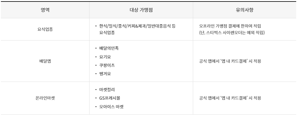 요식업종/배달앱/온라인마켓 이용 시 추가 적립