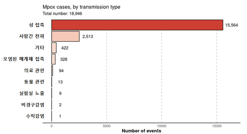 - 엠폭스는 동물 > 사람, 사람 > 사람, 감연된 환경 > 사람 간 접촉을 통해 감염이 가능
