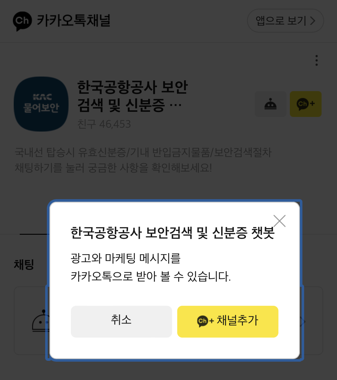 한국공항공사 보안검색 카카오채널 추가