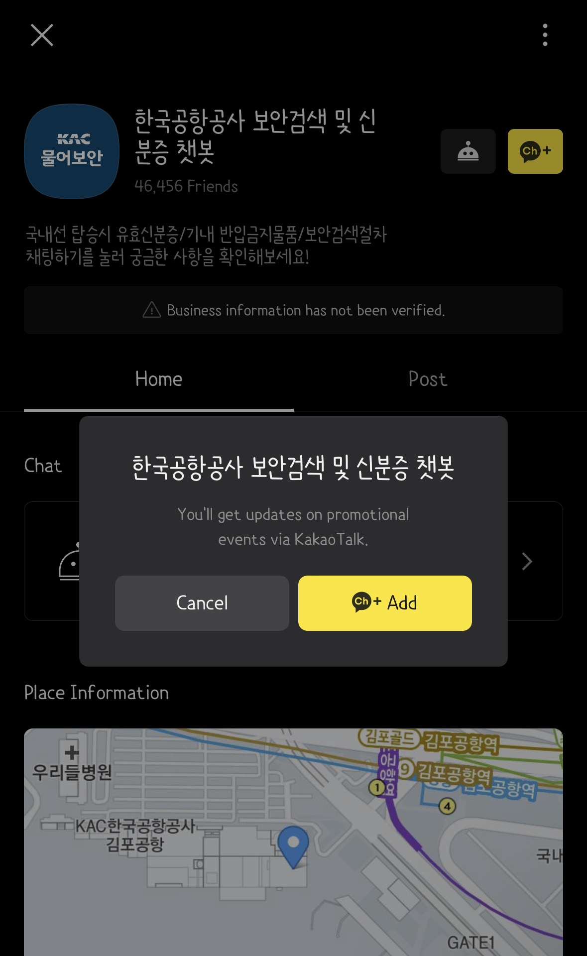 한국공항공사 보안검색 카카오채널 추가