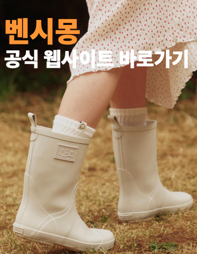 귀엽고 심플한 디자인으로 10만 원 이하의 가성비 아이템으로 꼽히는 벤시몽. 헌터나 락피쉬의 레인부츠와 달리 벤시몽 부츠가 더욱 가벼워서 부담감 없이 신기에 좋다. 천연고무가 48.6% 함유되어 내구성과 탄성이 높아 안정적인 착용감 준다. 사계절 언제나 데일리로 착용 가능한 아이템이다. 논슬립 러버 아웃솔로 미끄럼방지에도 효과적이며 백스테이 포인트로 쉽게 신고 벗기 편하도록 제작되었다.