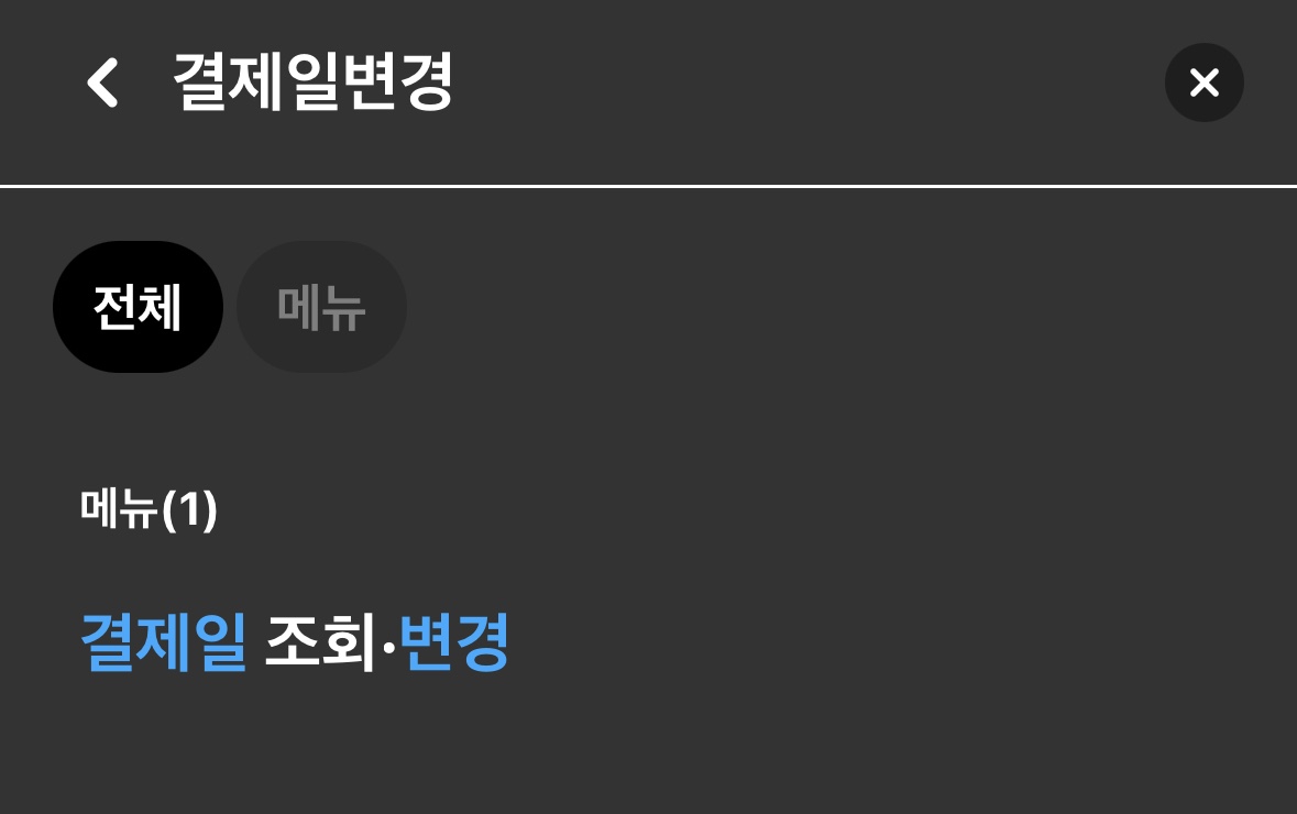 간단하게 검색을 이용하여 결제일 조회, 변경탭에 들어갈 수 있다.