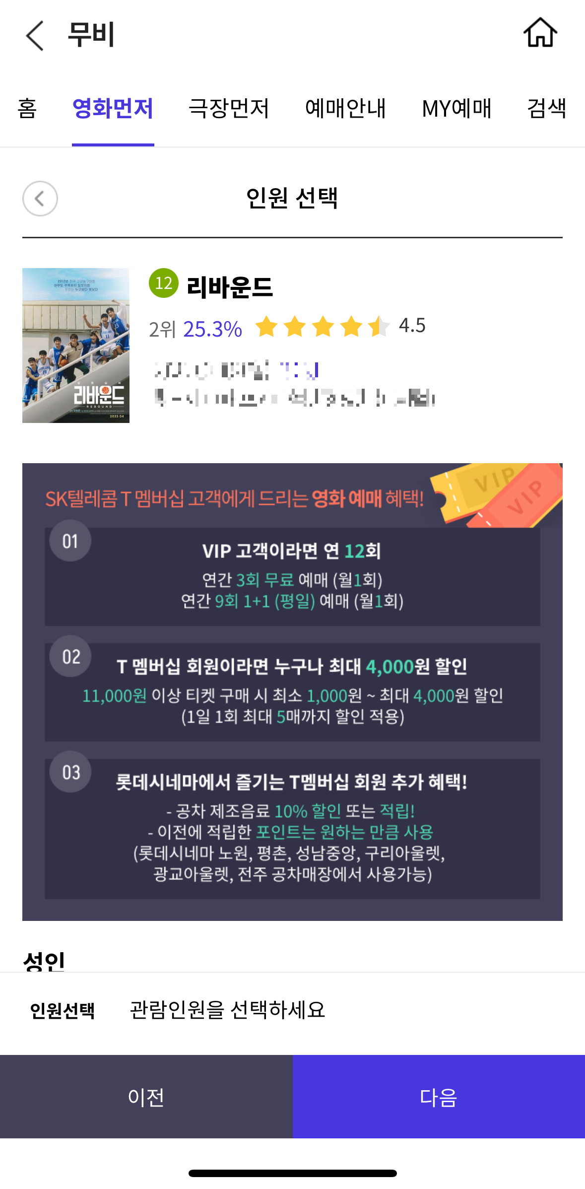 SK텔레콤 T멤버십 고객의 영화 예매 혜택