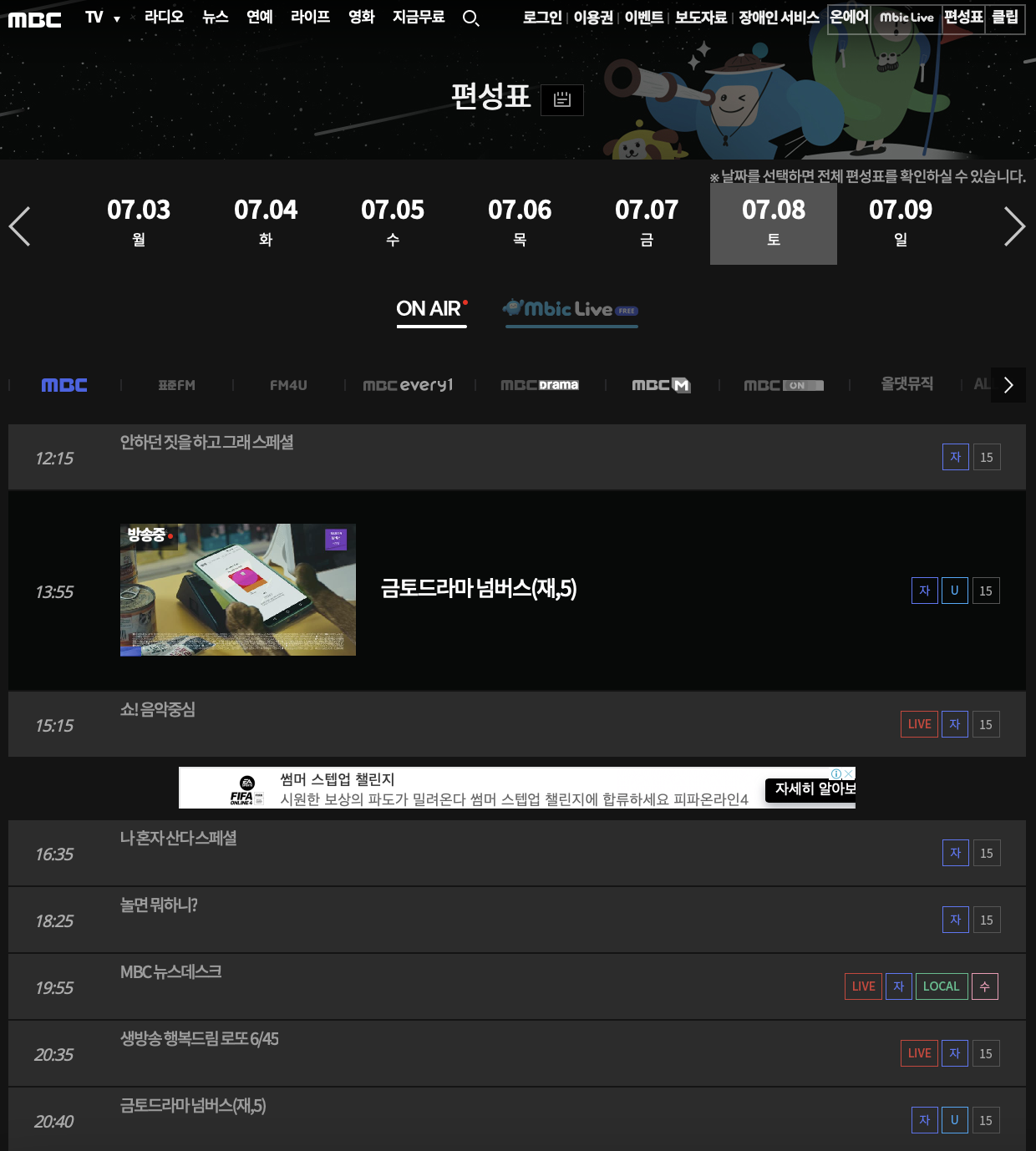 mbc 편성표 확인하기