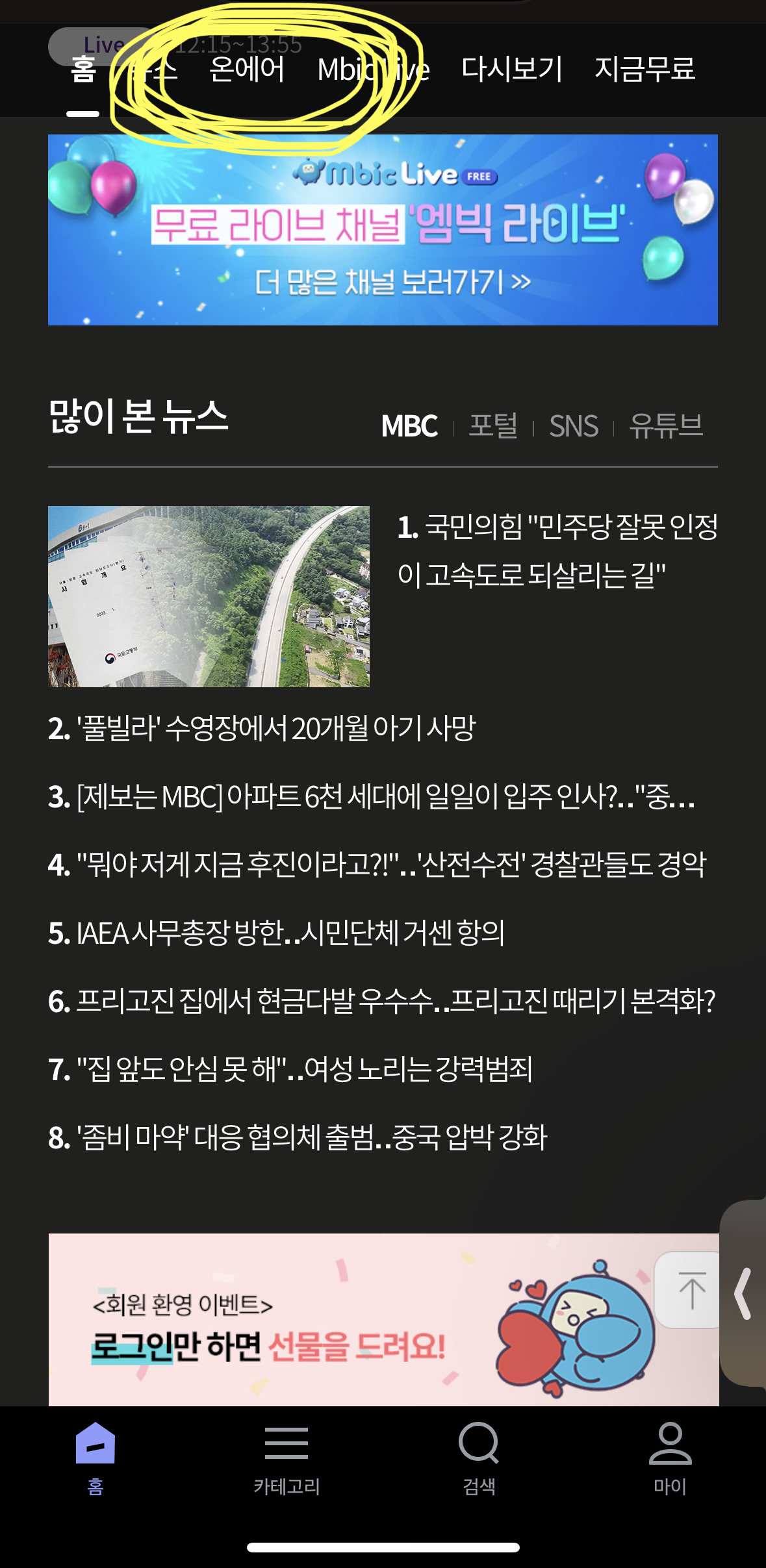 스마트폰, 태블릿만 있으면 어느 나라에서든 mbc 프로그램을 즐길 수 있어요. 스마트폰으로 시청하는 방법은 MBC 어플을 다운로드하여 온에어를 이용할 수 있습니다.